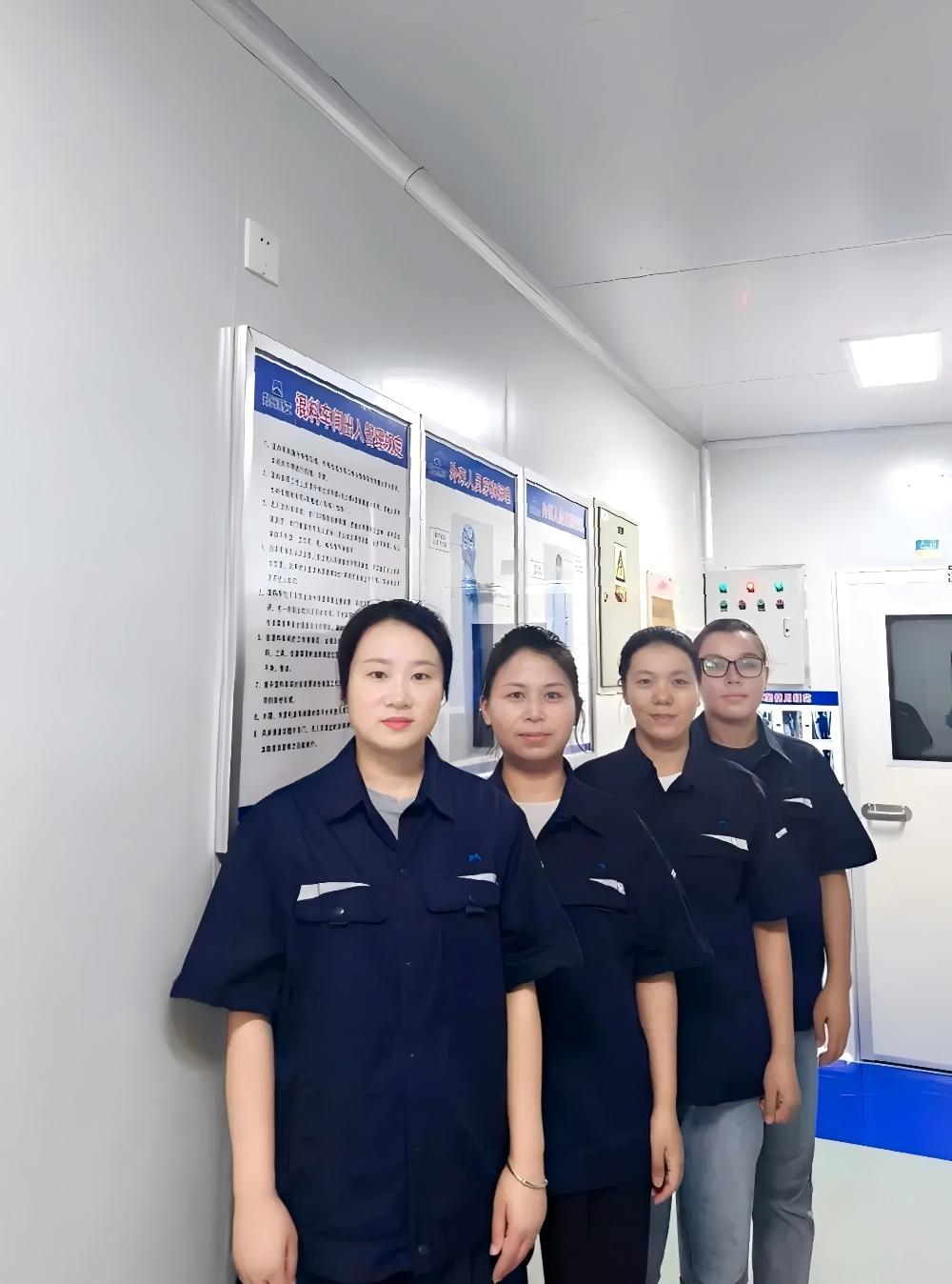 在新亞公司有這樣一個掌握產(chǎn)品技術(shù)核心的“神秘”班組,他們每天在潔凈間內(nèi)穿戴著潔凈服、戴著口罩,我們平時只能透過小小的窗口看到他們工作時專注的眼神,今天我們就一起來了解一下這個由四朵金花組成的班組——混料班組。